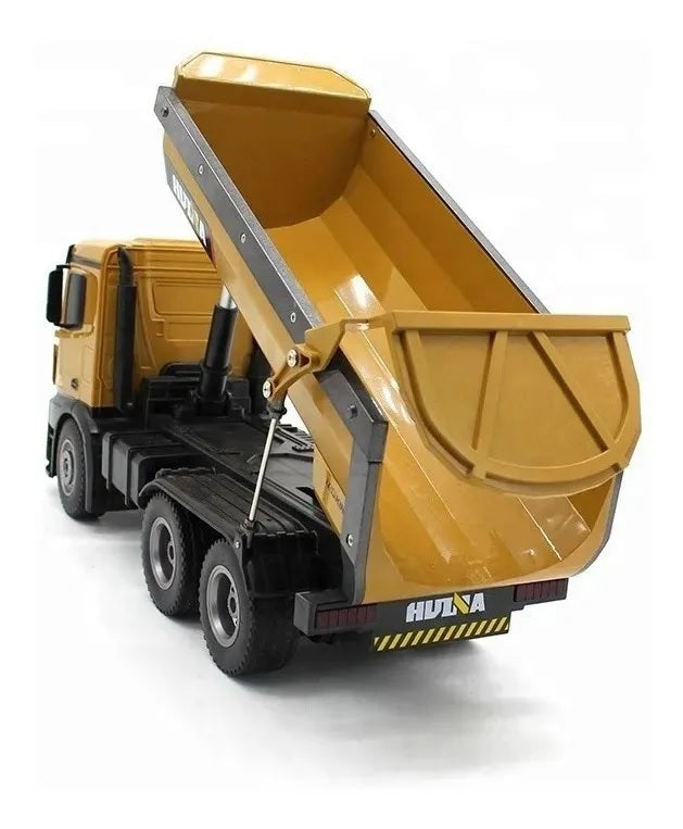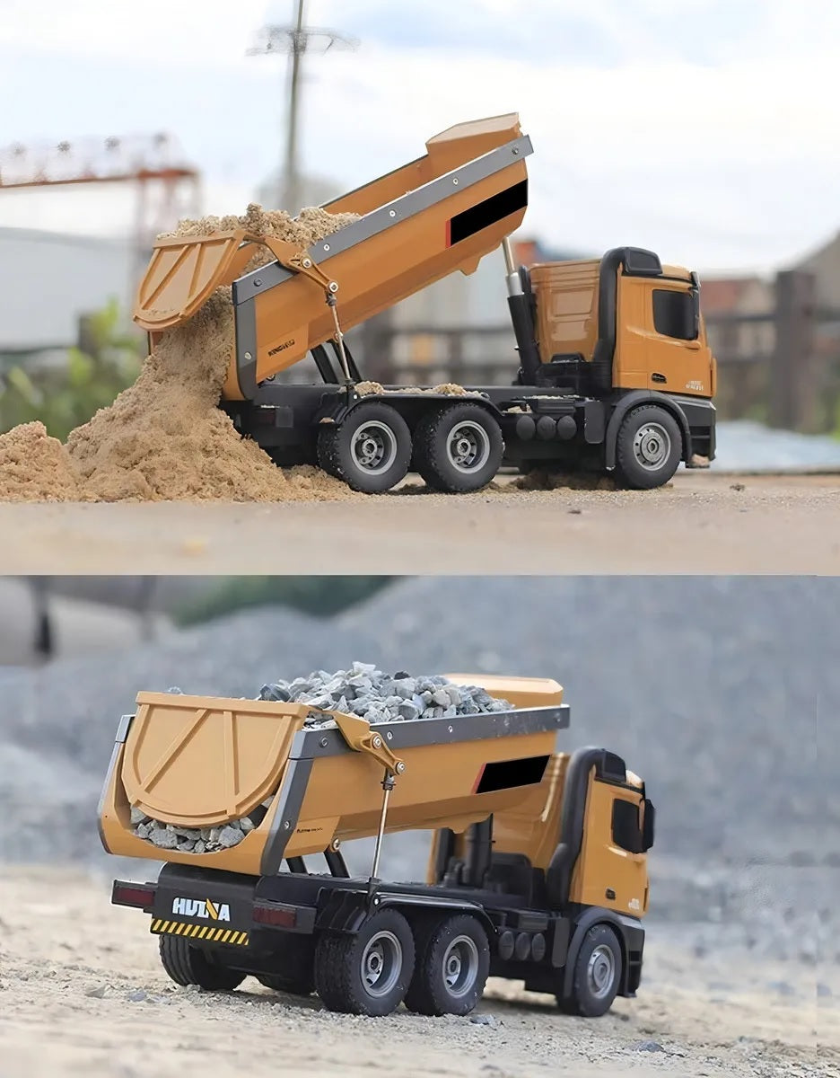 Sim! Com força bruta de verdade, ele transporta e despeja cargas de até 10kg (como terra, areia e pedras) com seu basculamento automático, simulando perfeitamente um caminhão profissional.